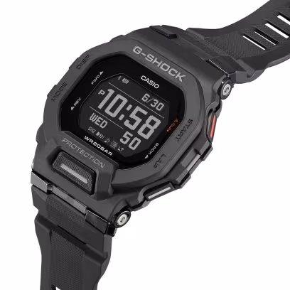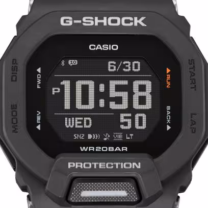 Say hello to some serious passion for sports with the G-SQUAD line of G-SHOCK watches. These models feature a square face design in colors chosen to calibrate with the most extreme workouts. Get in on the thinnest G-SQUAD yet. Side slits in the bezel allow the color of the inner case to peek through, highlighting just how slim this watch is. The light button is positioned on the case front for handy access to ensure an easy read during night workouts. Access your smartphone GPS via Bluetooth® for precision accelerometer measurement. All the info you need is at your fingertips — distance, speed, and pace, as well as auto lap readings to keep track of running times for set distances. The display includes calories burned, a step tracker, interval timer, and lap timer to keep your daily exercise on track. Also use the app to check life logs and activity history from your watch. With extra adjustment holes in the soft urethane band for a quality, precision fit, you’re set to enjoy full-on function and complete comfort. Available in lime green, black, or navy blue.