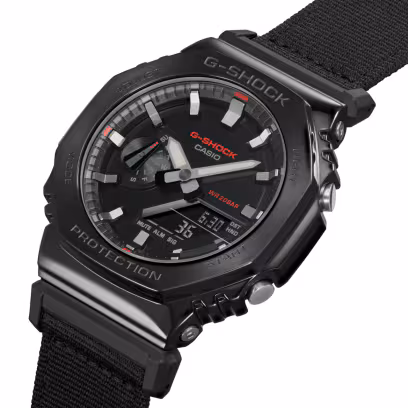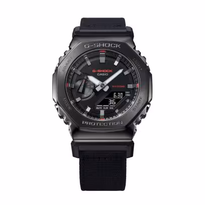 Add a utilitarian statement to your style with a G-SHOCK from the Utility Metal collection. These innovative watches take the iconic octagonal form and metal-clad design of the GM-2100 line and pair it with a casual fabric band in an utilitarian color that goes with any outfit. The striking contrast of metal and fabric results in an rugged style that is all about toughness and casual sophistication.