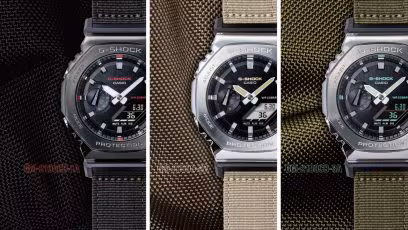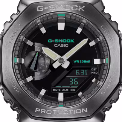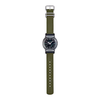 Add a utilitarian statement to your style with a G-SHOCK from the Utility Metal collection. These innovative watches take the iconic octagonal form and metal-clad design of the GM-2100 line and pair it with a casual fabric band in an utilitarian color that goes with any outfit. The striking contrast of metal and fabric results in an rugged style that is all about toughness and casual sophistication.