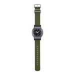 A separate dial and LCD serve up analog beauty alongside digital performance. The LCD angles gently to follow the lines of the lugs, while the analog dial features simple bar index marks. The watch face adorned in a grid pattern adds the final touch for a real retro feel.