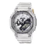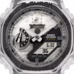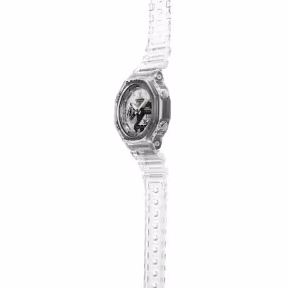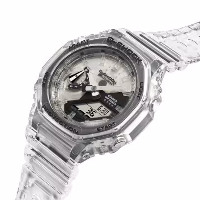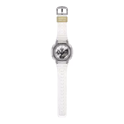 Express yourself in no uncertain terms with the G-SHOCK 40th anniversary Clear Remix lineup — popular G-SHOCK designs deconstructed with see-through components for the clearest look yet. See-through materials for the band, case, dial, LCD, and buttons provide a behind-the-scenes view of the module substrate printed with the G mark and G-SHOCK logo. The case back features the Eric Haze-designed 40th logo, and the band loop is engraved with four stars in a nod to this special anniversary. These details and the first-ever use of a see-through case made of clear glass fiber diamide deliver a singular design worthy of an exceptional limited-edition G-SHOCK.